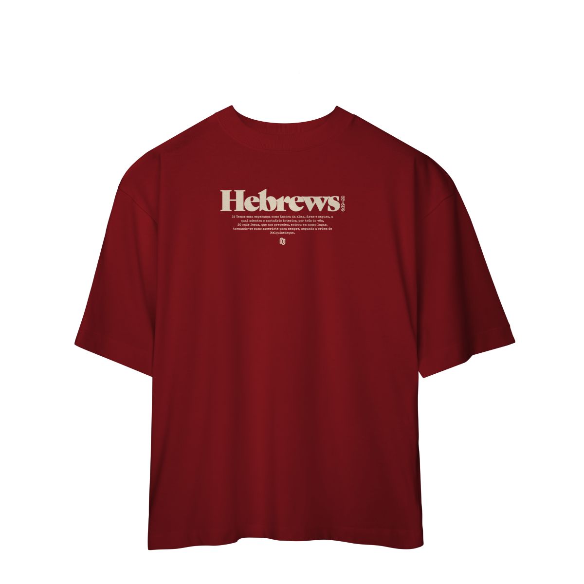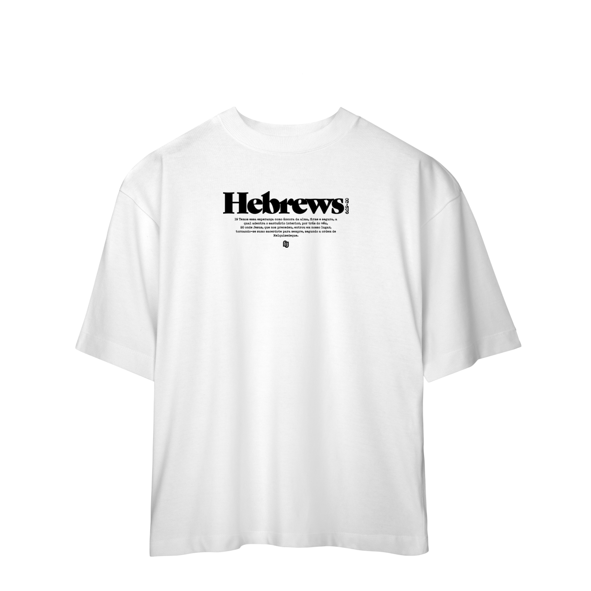 A camiseta Hebrews é uma declaração de fé minimalista e impactante. Inspirada no livro de Hebreus, o design tipográfico transmite firmeza e perseverança, refletindo a verdade bíblica de que Cristo é o autor e consumador da nossa fé.