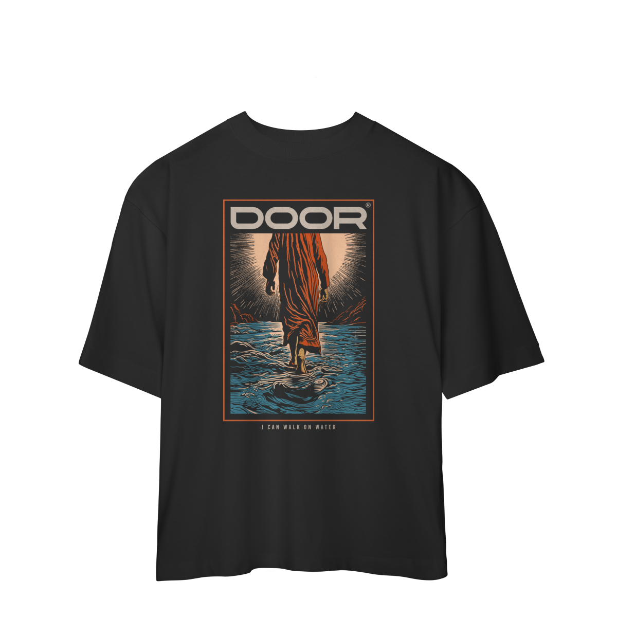 A camiseta I Can Walk on Water é inspirada no milagre de Jesus registrado nos evangelhos, quando Ele andou sobre as águas revelando Seu poder e autoridade divinos. A arte marcante traz a cena de Cristo caminhando sobre o mar, iluminado pela glória, como um lembrete de que nada é impossível para aqueles que confiam n’Ele.